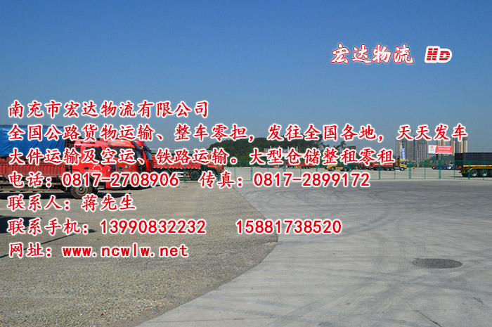 國內(nèi)公路貨物運(yùn)輸、整車、零擔(dān)、大件運(yùn)輸及空運(yùn)、鐵路運(yùn)輸。 專線:南充-廣州、深圳、浙江、上海、國內(nèi)每天發(fā)車往返。3-4天到達(dá)目的地。手機(jī):13990832232 15881738520